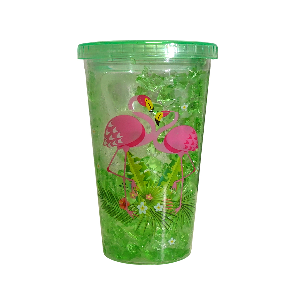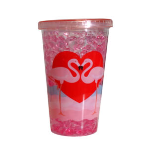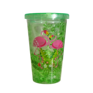 Vasos con tapa y pitillo de colores con diseños de flamencos